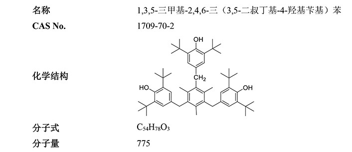 高分子受阻酚類抗氧劑,與材料相容性好,耐水抽提性好。